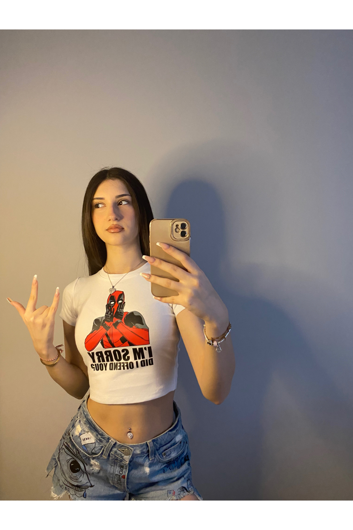 Kırmızı Deadpool Karakter ve Yazı Baskılı Model Crop Body Kırmızı Deadpool Karakter ve Yazı Baskılı Model Crop Body deaviolon L/XL
