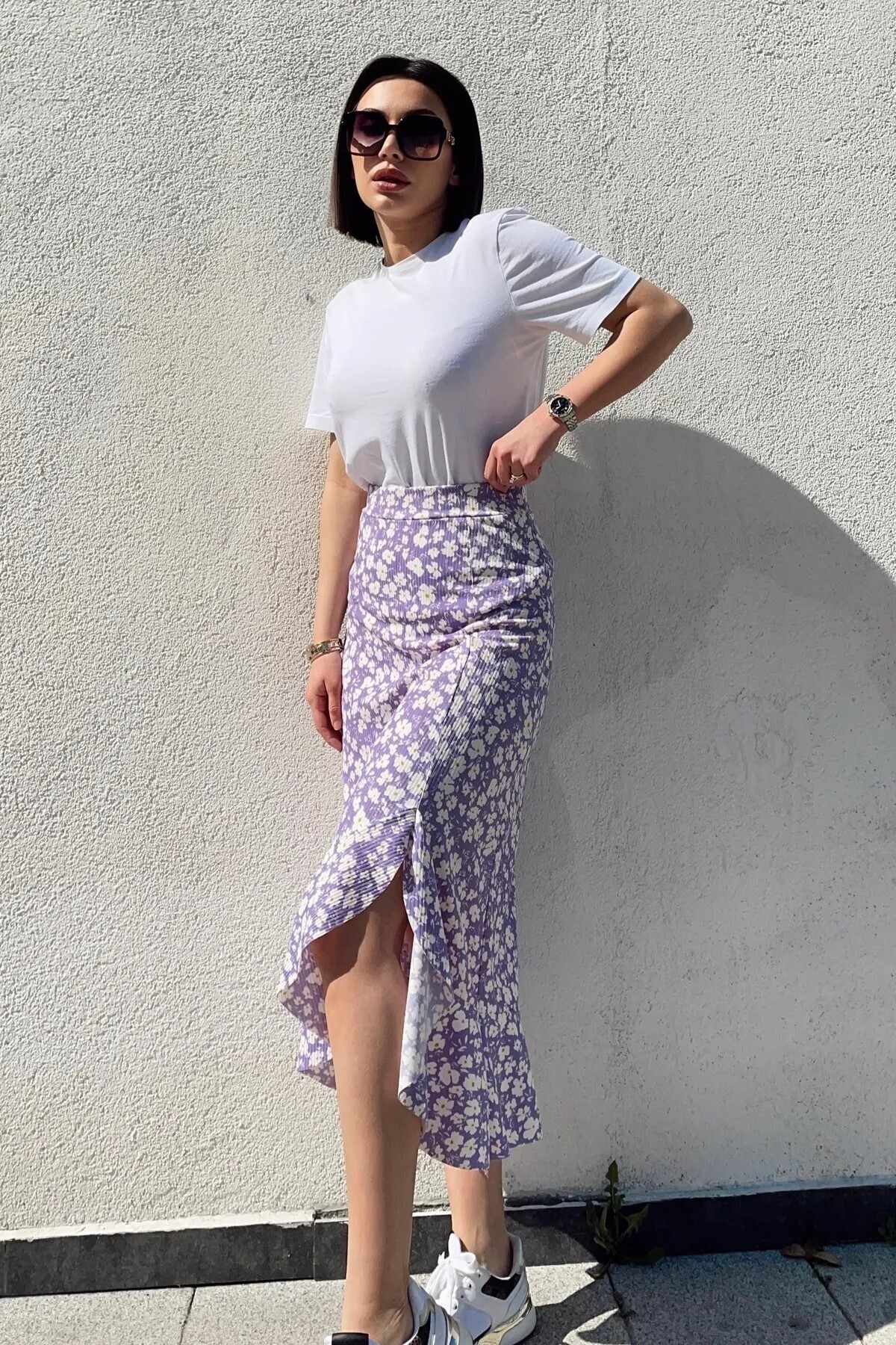 Lila Fırfırlı Bürümcük Kumaş Çiçekli Asimetrik Etek 80 Cm Lila Fırfırlı Bürümcük Kumaş Çiçekli Asimetrik Etek 80 Cm ETEK080 XL
