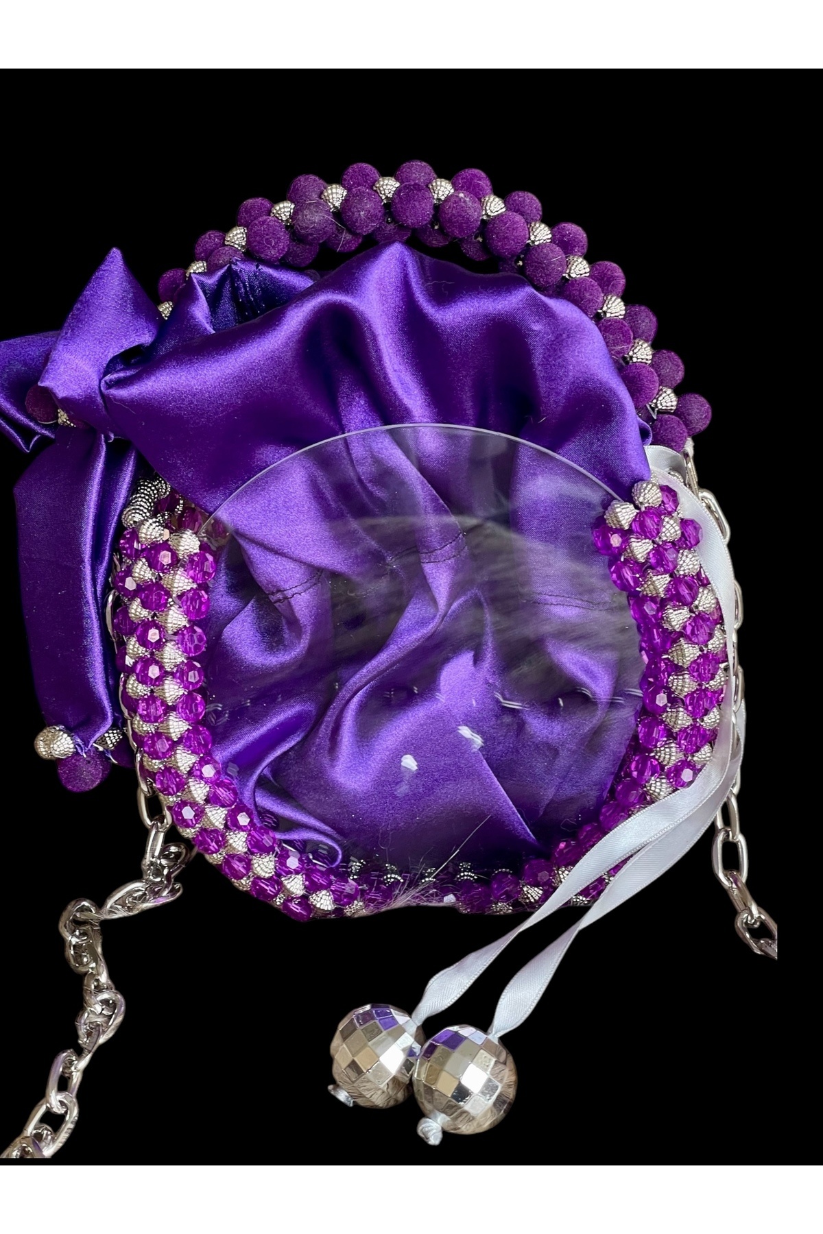 Gümüş Detaylı Siyah Şeffaf El ve Omuz Çantası Gümüş Detaylı Siyah Şeffaf El ve Omuz Çantası ARV090324 Standart