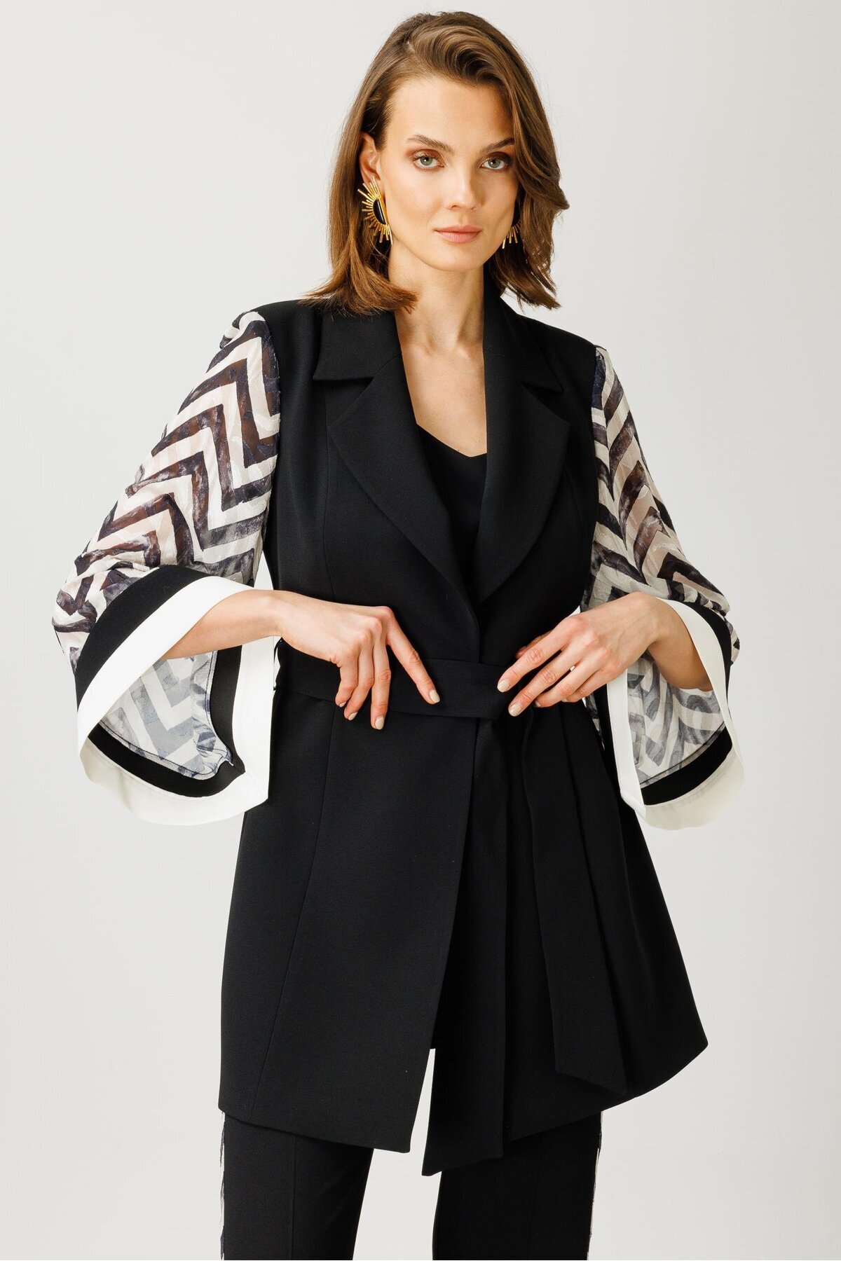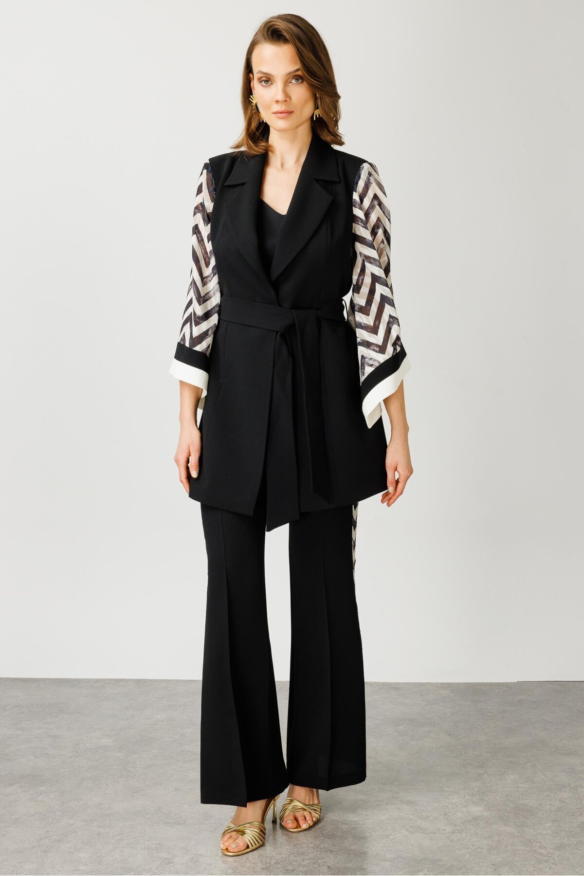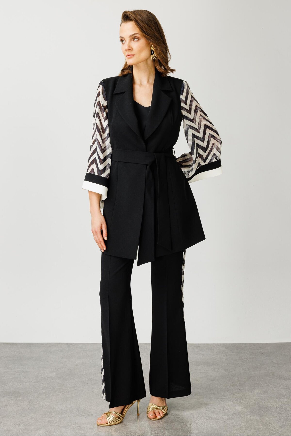 Modailgi Kolları Zikzak Desenli Atletli Uzun Ceket Siyah Modailgi Kolları Zikzak Desenli Atletli Uzun Ceket Siyah ILG241CKT07565 46
