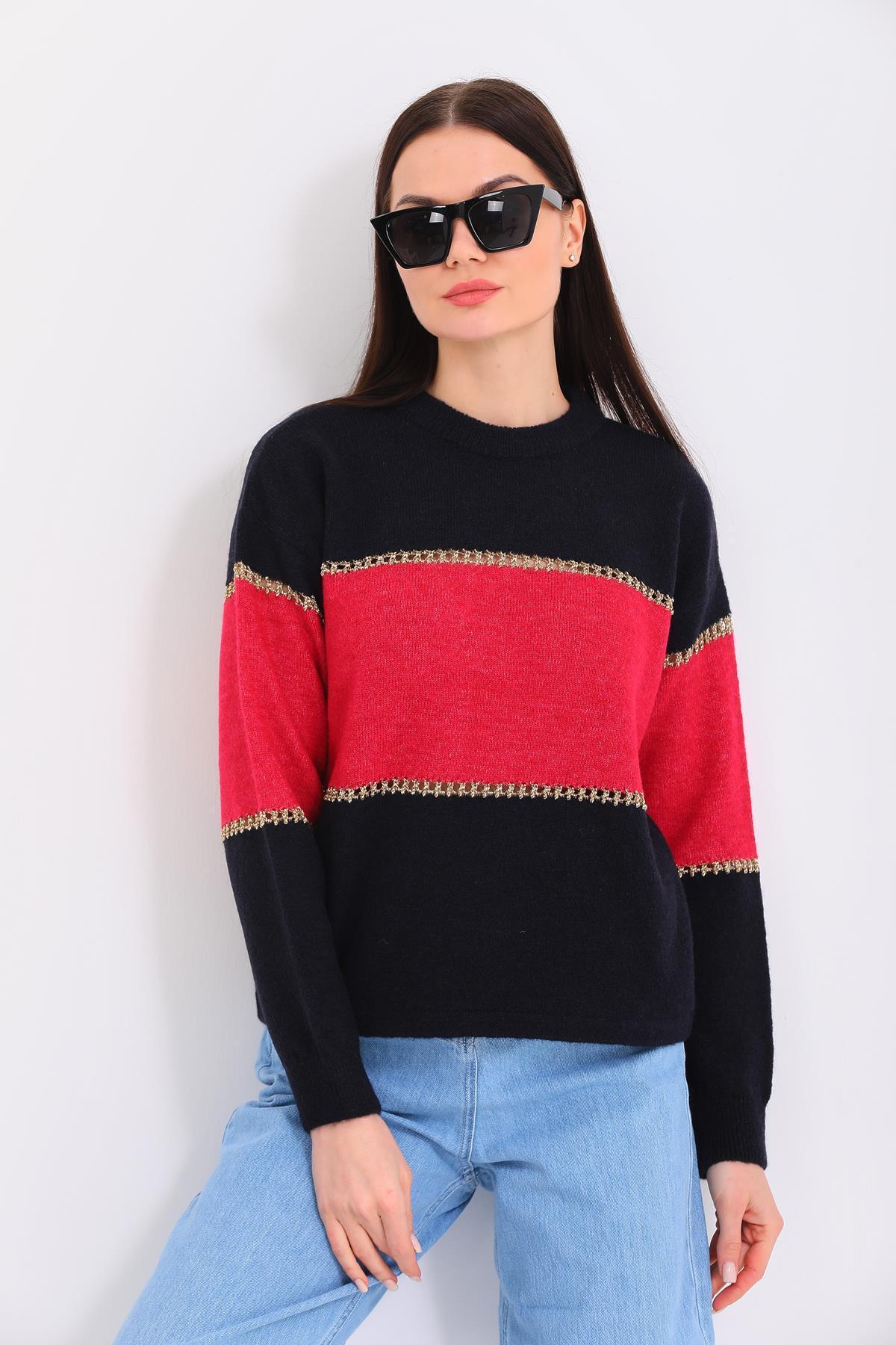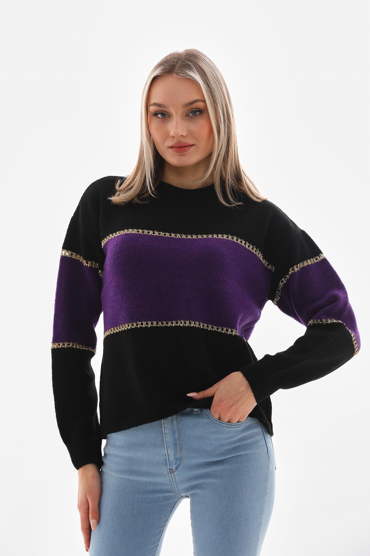 Siyah Mor Bisiklet Yaka Çift Renk Kadın Kazak Siyah Mor Bisiklet Yaka Çift Renk Kadın Kazak CLM018 XL