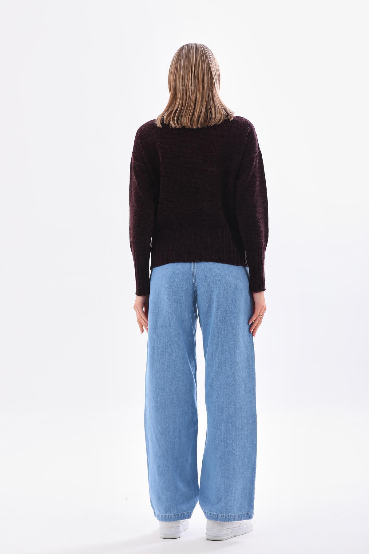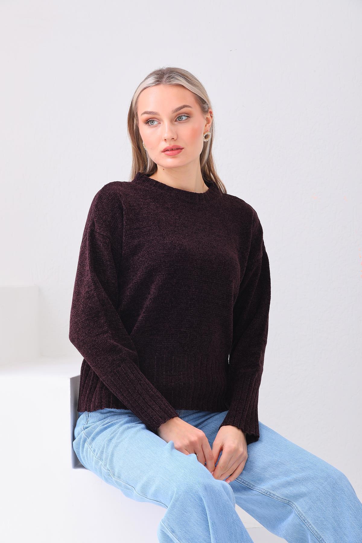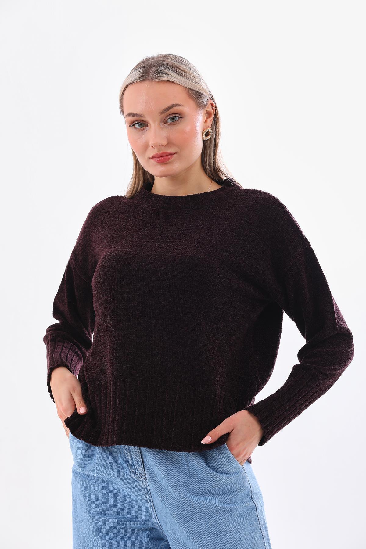 Şönil Mürdüm Yumuşacık Bisiklet Yaka Kadın Kazak Şönil Mürdüm Yumuşacık Bisiklet Yaka Kadın Kazak CLM020 L