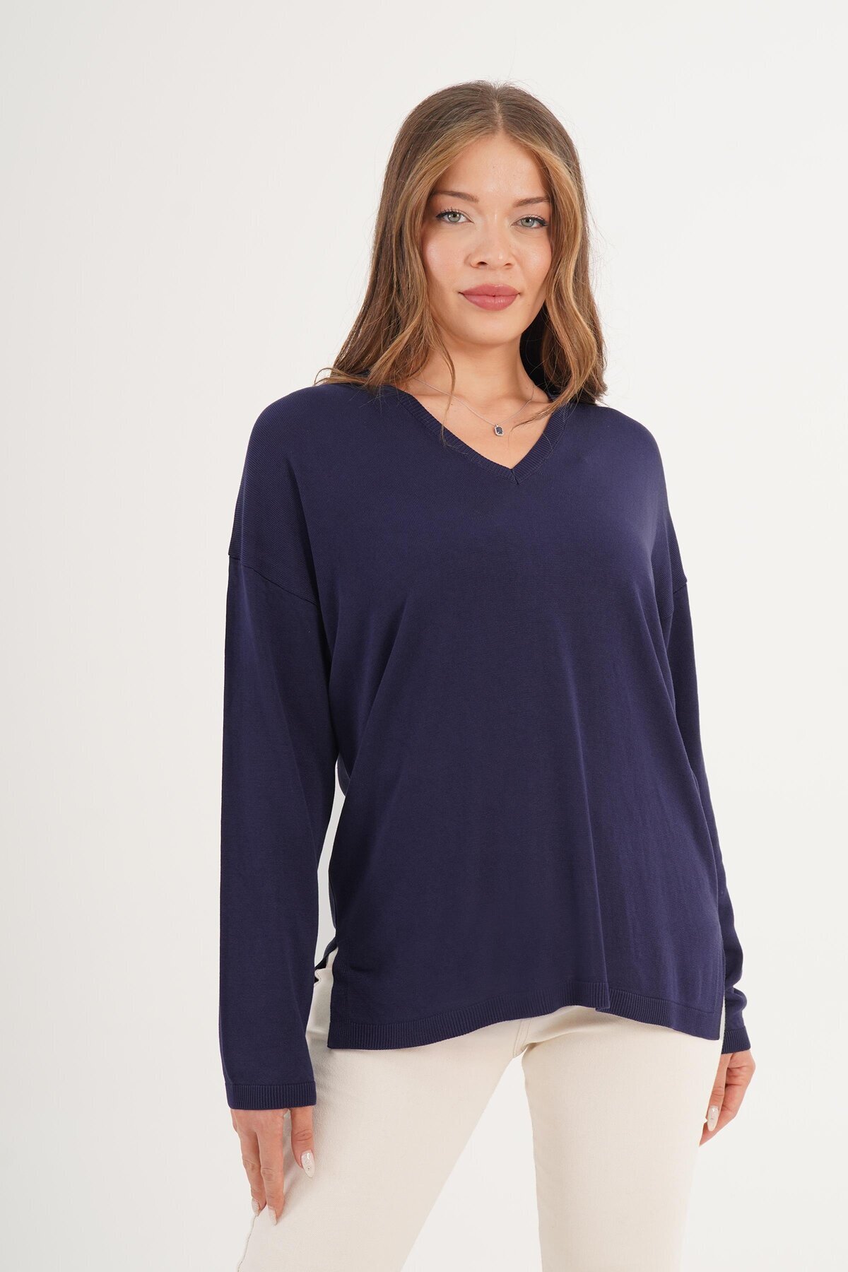 Lacivert V Yaka Ince Triko Kadın Kazak Lacivert V Yaka Ince Triko Kadın Kazak CLM021 L