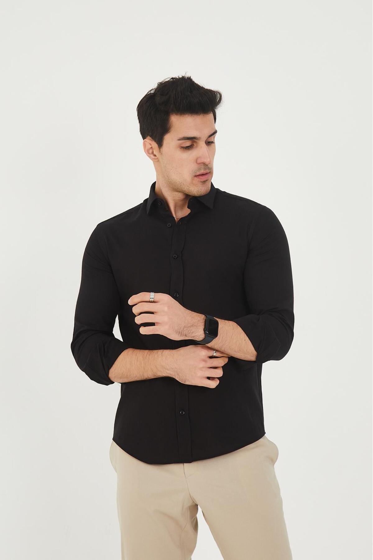 Slim Fit Siyah Gizli Pat Normal Yaka Balenli Pamuklu Erkek Gömlek Slim Fit Siyah Gizli Pat Normal Yaka Balenli Pamuklu Erkek Gömlek GZLPS001 2XL