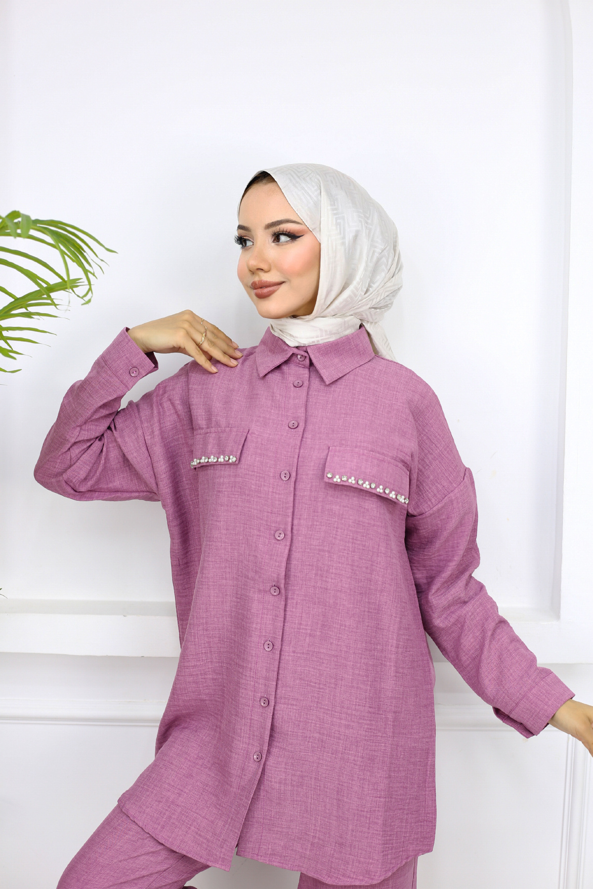 Kadın Etek Ucu Pileli Keten Gömlek Pantolon İkili Takım Kadın Etek Ucu Pileli Keten Gömlek Pantolon İkili Takım 3944 2XL