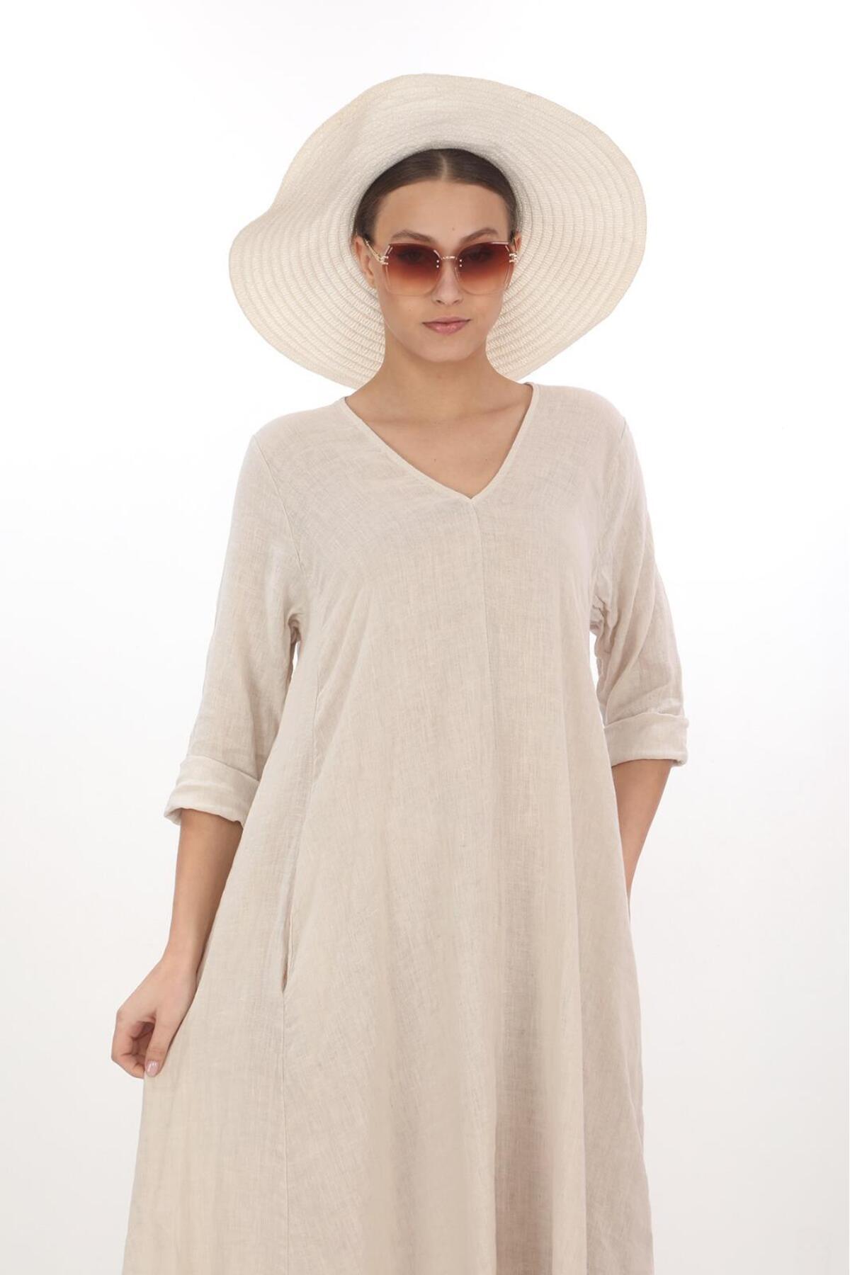 İtalyan V yaka Uzun Kol Keten Elbise İtalyan V yaka Uzun Kol Keten Elbise BHMSTL1319-018 Standart