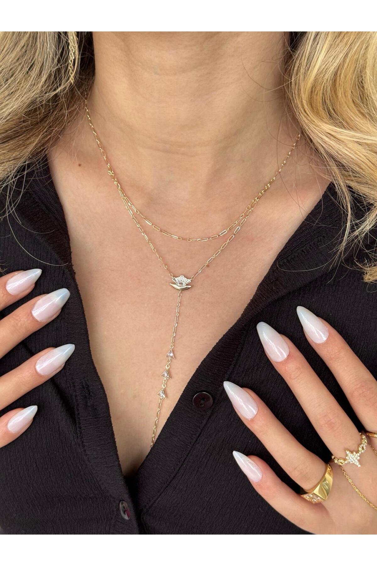 Işıltılı Melek Kanatları - Altın Rengi Çelik Kolye Işıltılı Melek Kanatları - Altın Rengi Çelik Kolye Maqdokolye55 45 cm