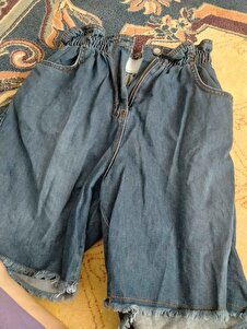 BEL LASTİKLİ BOL KESİM KOT ŞORT BEL LASTİKLİ BOL KESİM KOT ŞORT KŞ 48