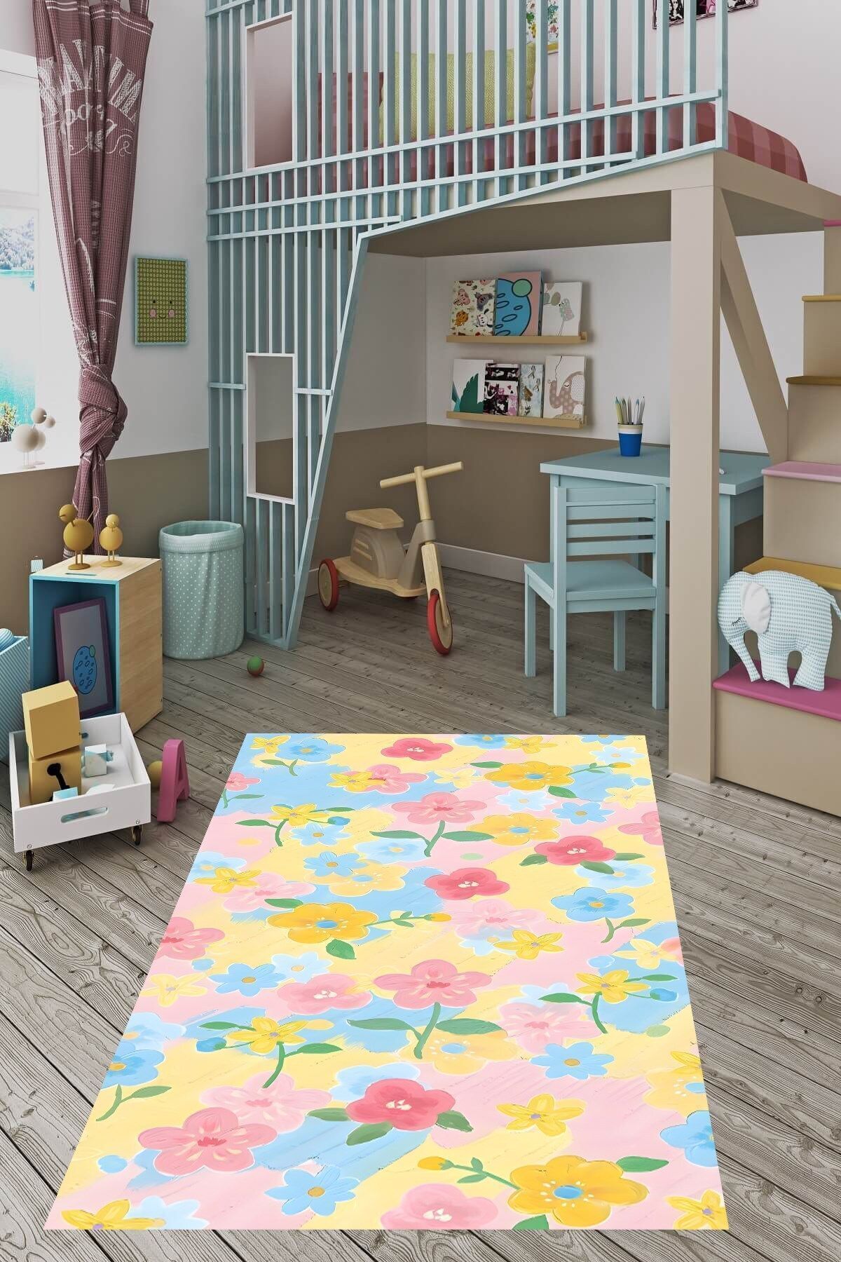 Rengarenk Çiçekler Canlı Renkler Yıkanabilir Kaymaz Taban Leke Tutmaz Çocuk Odası Halısı Rengarenk Çiçekler Canlı Renkler Yıkanabilir Kaymaz Taban Leke Tutmaz Çocuk Odası Halısı PNHC14 160 x 230