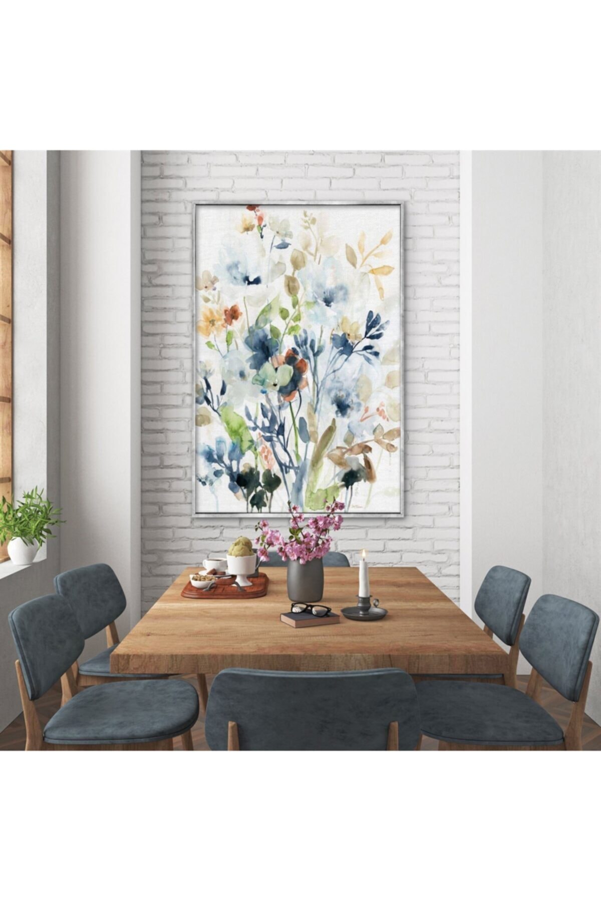 Mavi Çiçek Yağlı Boya Dokulu Tablo Gümüş Çerçeve Mavi Çiçek Yağlı Boya Dokulu Tablo Gümüş Çerçeve TYC00285071566 100 x 150