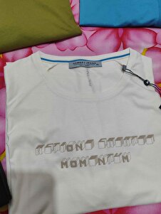 Ekru Baskılı Bisiklet Yaka %100 Pamuk T-Shirt Ekru Baskılı Bisiklet Yaka %100 Pamuk T-Shirt 161049 3XL