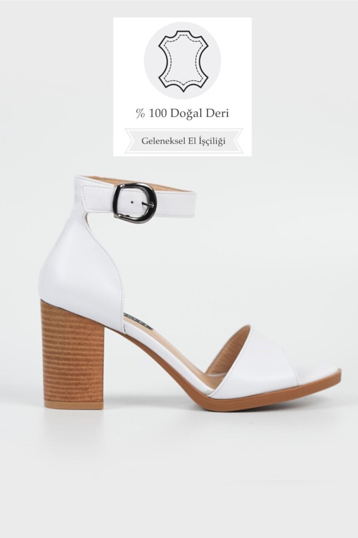 KADIN BEYAZ HAKİKİ DOĞAL DERİ KALIN TOPUKLU BANTLI SANDALET KADIN BEYAZ HAKİKİ DOĞAL DERİ KALIN TOPUKLU BANTLI SANDALET VVS.34324.11 40