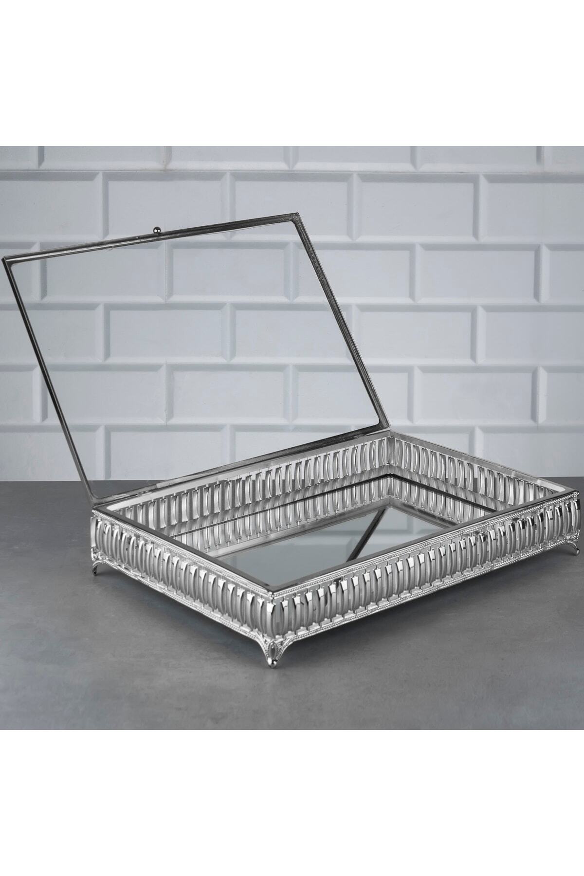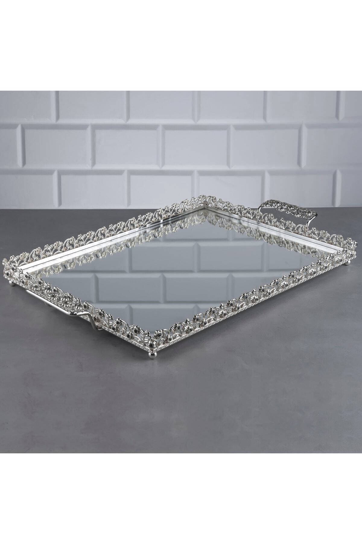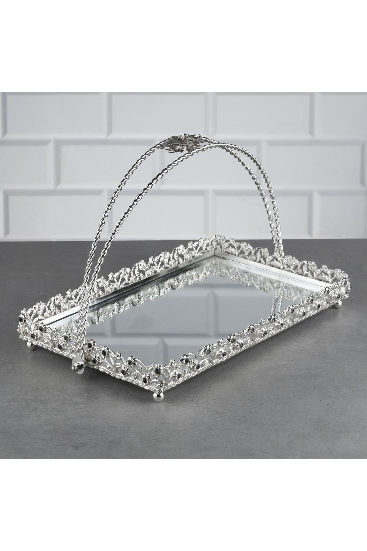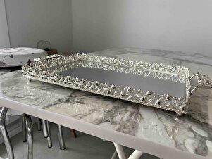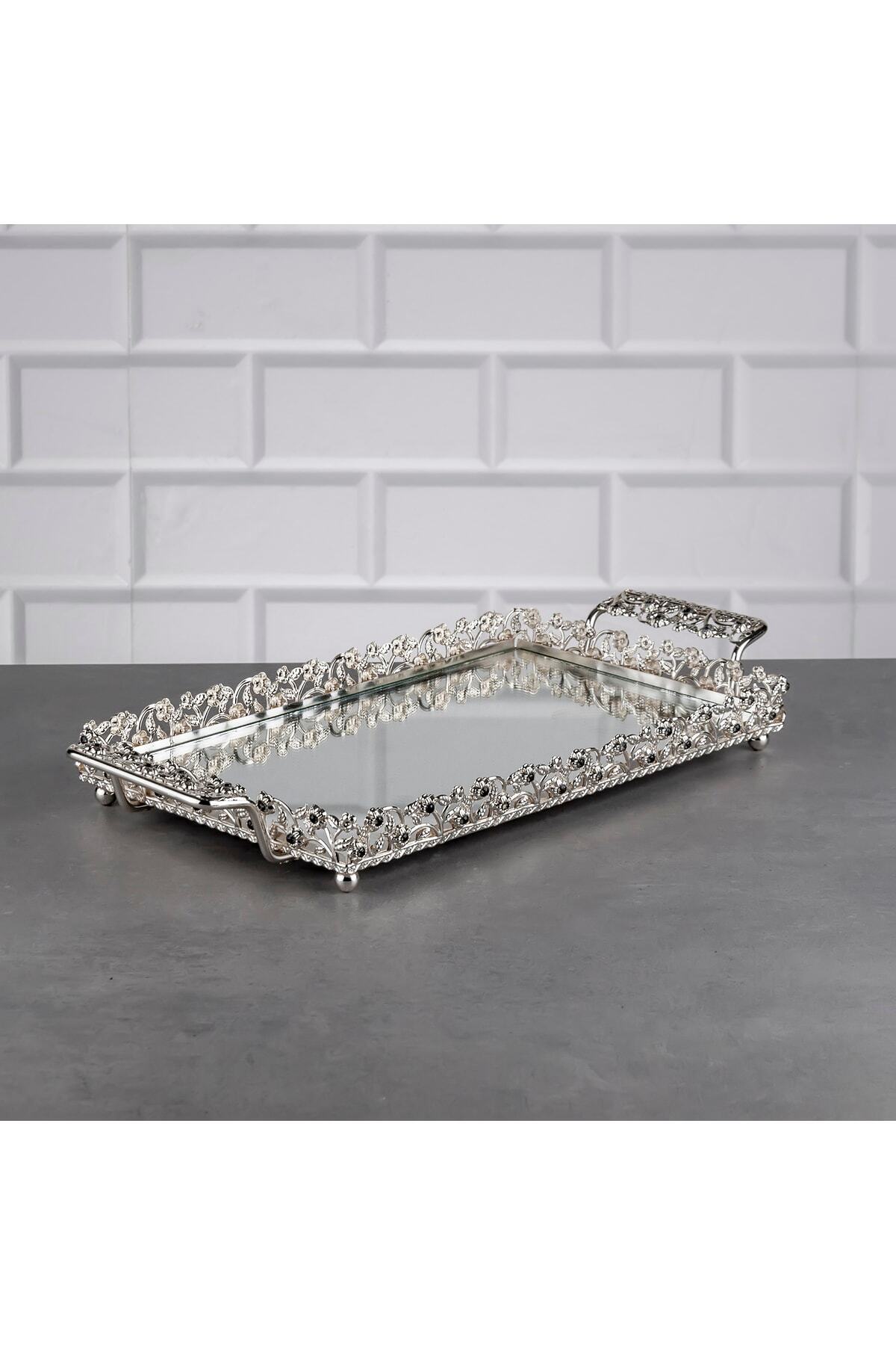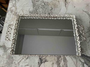 Pırlanta Taşlı Dikdörtgen Orta Tepsi Aynalı Metal Kulplu Çay Kahve Sunumluk Çikolata Tepsisi Gümüş Pırlanta Taşlı Dikdörtgen Orta Tepsi Aynalı Metal Kulplu Çay Kahve Sunumluk Çikolata Tepsisi Gümüş BZ-ELS37G تک سایز