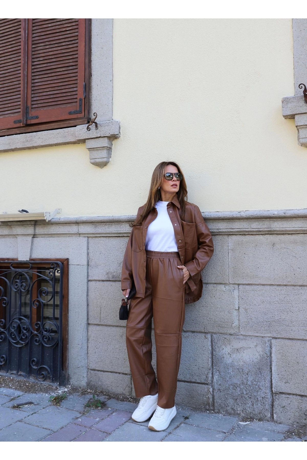 Beige BEİGE BELİ LASTİKLİ DİKİŞ DETAY DERİ PANTOLON Beige BEİGE BELİ LASTİKLİ DİKİŞ DETAY DERİ PANTOLON EY-PNT1141 M