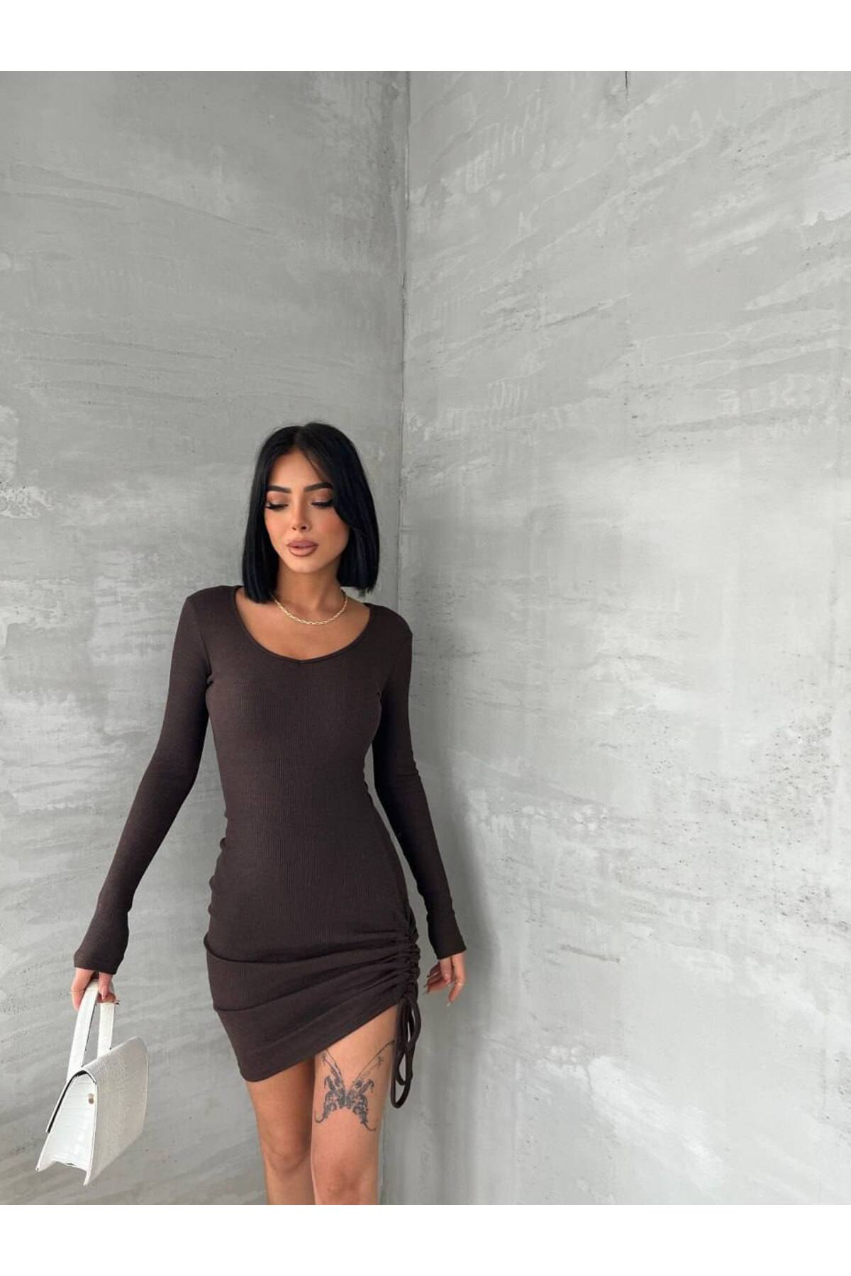 Yakası Dantel Detaylı Uzun Kol Kaşkorse Mini Elbise Yakası Dantel Detaylı Uzun Kol Kaşkorse Mini Elbise 24K012382 Standart