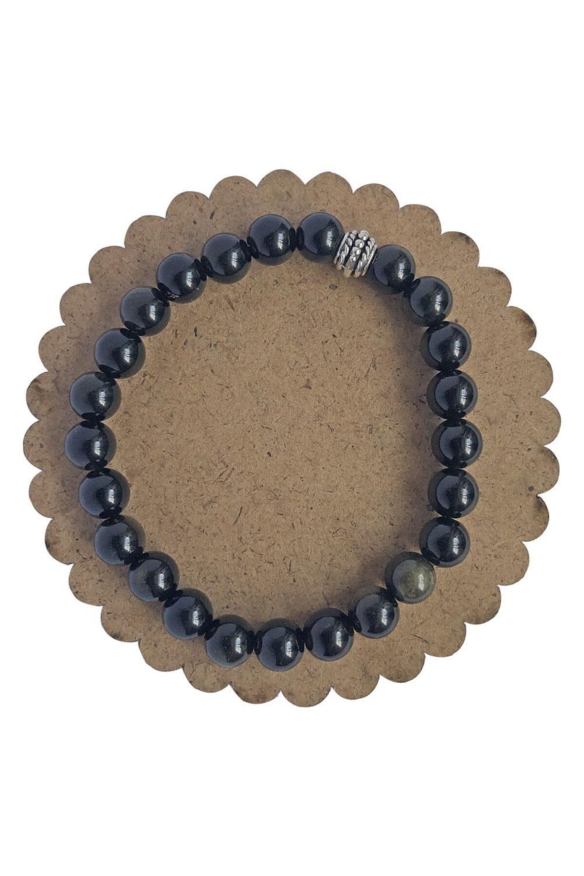 İri Kırık Taşlı Siyah Obsidyen Taşı Doğal Taş Yetişkin Bileklik İri Kırık Taşlı Siyah Obsidyen Taşı Doğal Taş Yetişkin Bileklik KLCBL1012 20 cm