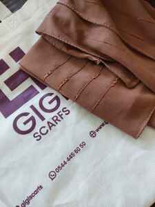 Fantezi Şeritli Arya Şifon Şal - Kahverengi - Fantezi Şeritli Arya Şifon Şal - Kahverengi - FY01 75 x 185