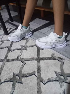 مشخصات فنی Çocuk Beyaz Bağcıklı Tek Cırt Cırtlı Esnek Hafif Nefes Alabilen Unisex File Sneaker Spor Ayakkabı