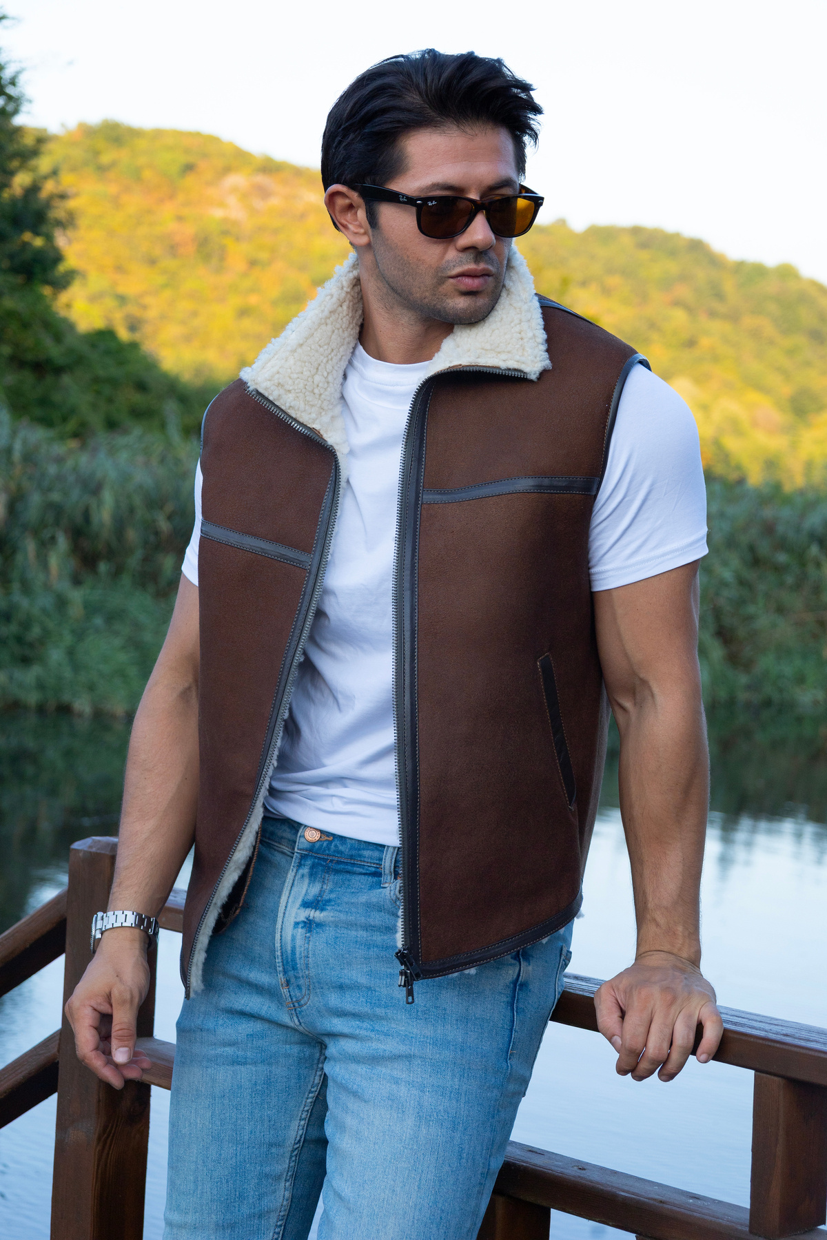 PatchWork İçi Kürk-Dışı Süet Hakiki Deri Yakalı Biye ve Triko Detaylı Yelek PatchWork İçi Kürk-Dışı Süet Hakiki Deri Yakalı Biye ve Triko Detaylı Yelek 260324SİYAHVİZON 2XL