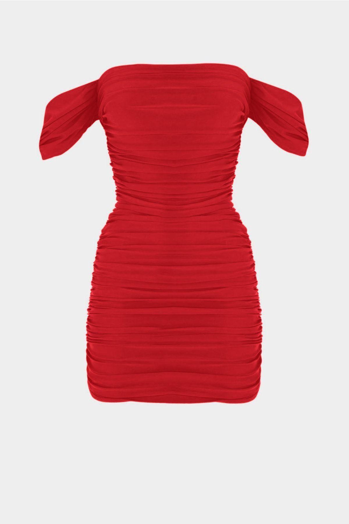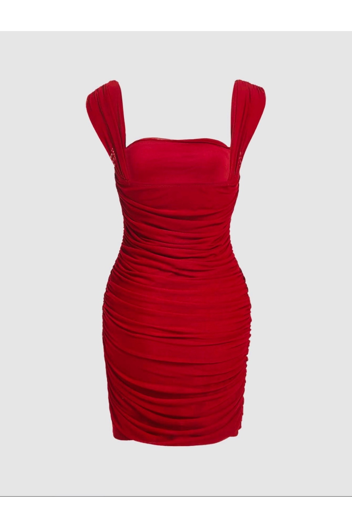 Lında - Kalın Askılı Büzgü Drapeli Mini Elbise Lında - Kalın Askılı Büzgü Drapeli Mini Elbise dbd202401 XL
