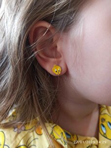 Gümüş Altın Kaplama Tweetty Civciv Çoçuk Küpesi Gümüş Altın Kaplama Tweetty Civciv Çoçuk Küpesi AA-CİVCİV-01 تک سایز