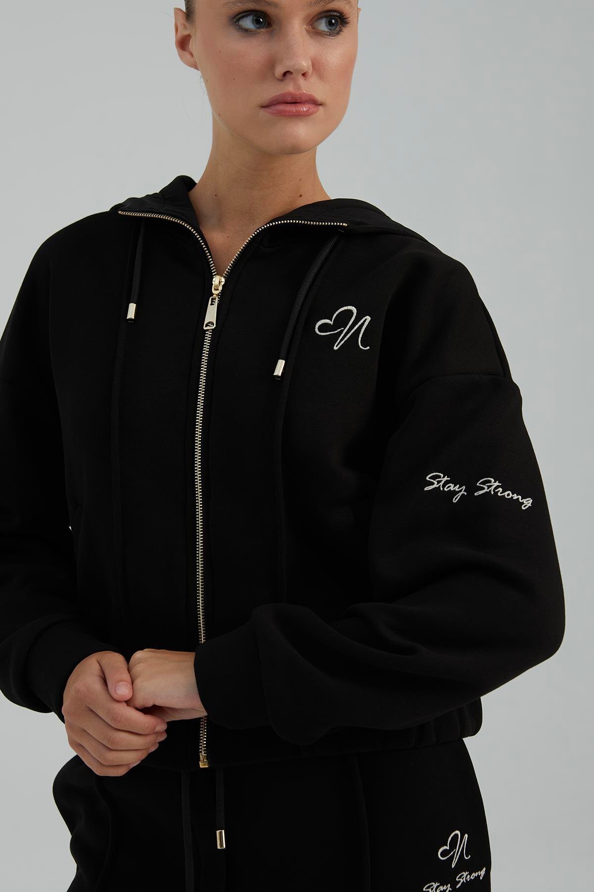 Kadın Kapüşonlu Fermuar Kapamalı Uzun Kollu Siyah Ceket NAAR81615-SİYAH Kadın Kapüşonlu Fermuar Kapamalı Uzun Kollu Siyah Ceket NAAR81615-SİYAH 38