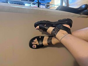 Siyah Deri Kadın Parmak Arası Sandalet 0 Siyah Deri Kadın Parmak Arası Sandalet 0 WENDIES 40