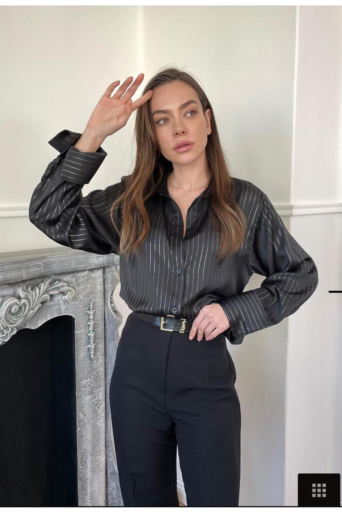 Çizgili Oversize Uzun Kol Gömlek Çizgili Oversize Uzun Kol Gömlek 10571 42