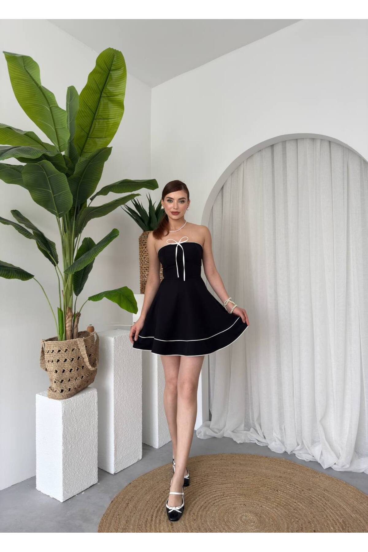 Kadın Atlas Kumaş Eteği Pilise ve Omzu Fiyonk Tasarımlı Kolsuz Siyah Mini Abiye Elbise 247 Kadın Atlas Kumaş Eteği Pilise ve Omzu Fiyonk Tasarımlı Kolsuz Siyah Mini Abiye Elbise 247 BS-ETC-247 XL