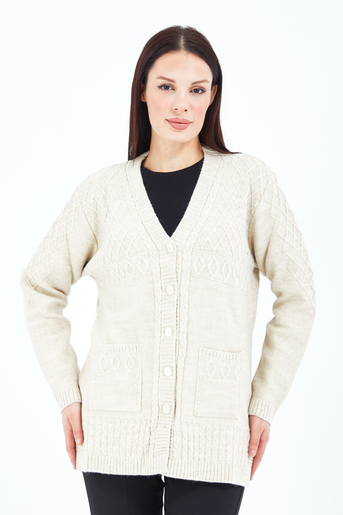 Kadın Haki Yeşil Düğmeli Yün Anne Triko Kısa Hırka Kadın Haki Yeşil Düğmeli Yün Anne Triko Kısa Hırka P627S11800 2XL