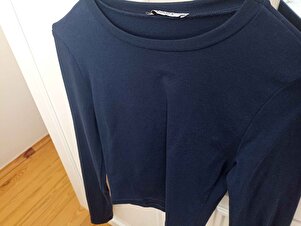 Bisiklet Yaka Basic Crop Bluz B15385-W8 Bisiklet Yaka Basic Crop Bluz B15385-W8 ADX-00030914 L