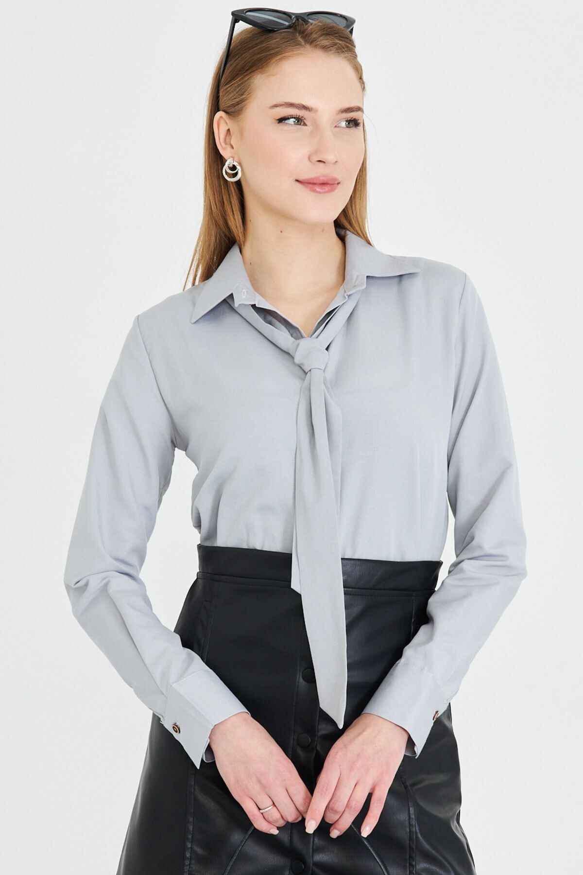 Önü Büzgülü Viskon Keten Gömlek Önü Büzgülü Viskon Keten Gömlek 24-3704 XL