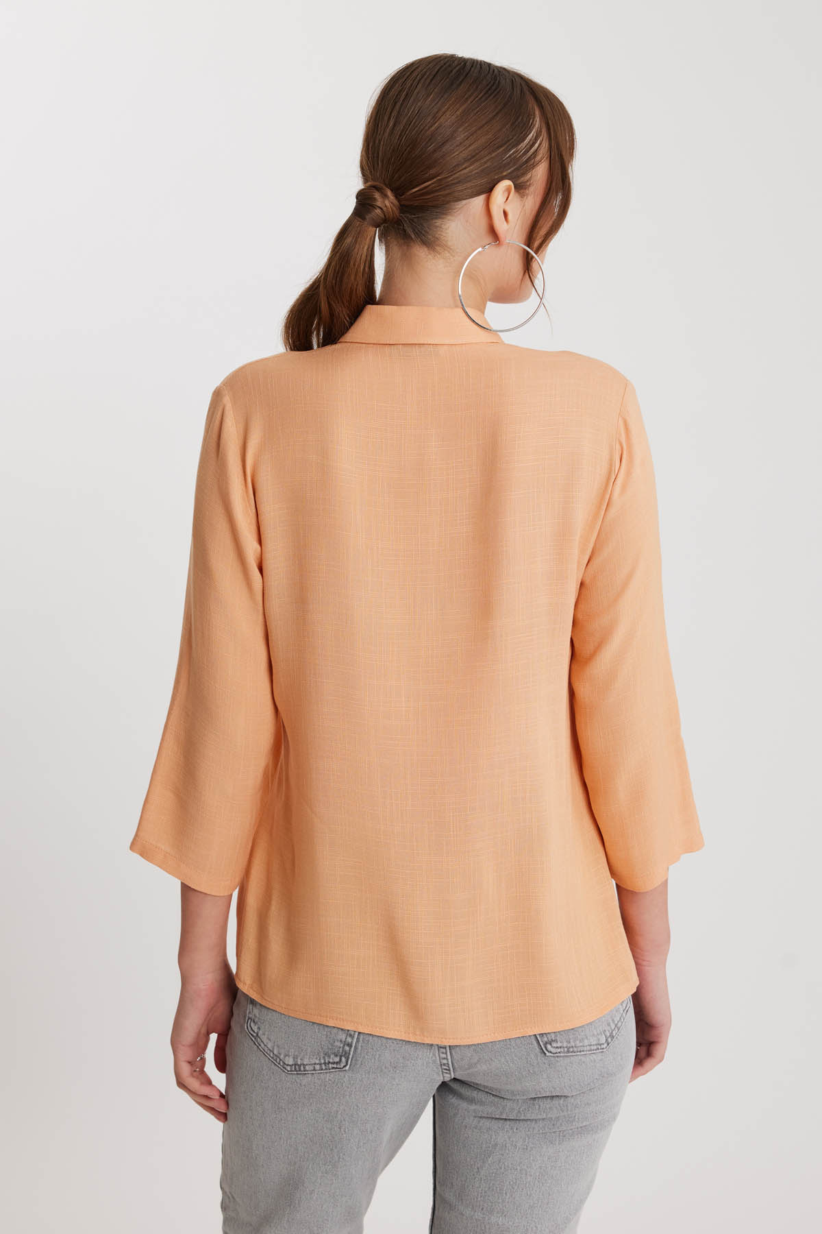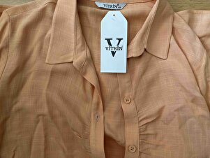 Önü Büzgülü Viskon Keten Gömlek Önü Büzgülü Viskon Keten Gömlek 24-3704 XL