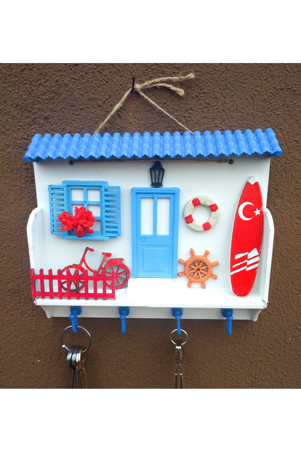 Alaçatı Ev Ahşap Anahtar Askısı, Bodrum Bisikletli Mavi Çatılı Anahtarlık Alaçatı Ev Ahşap Anahtar Askısı, Bodrum Bisikletli Mavi Çatılı Anahtarlık P4636S8726 تک سایز