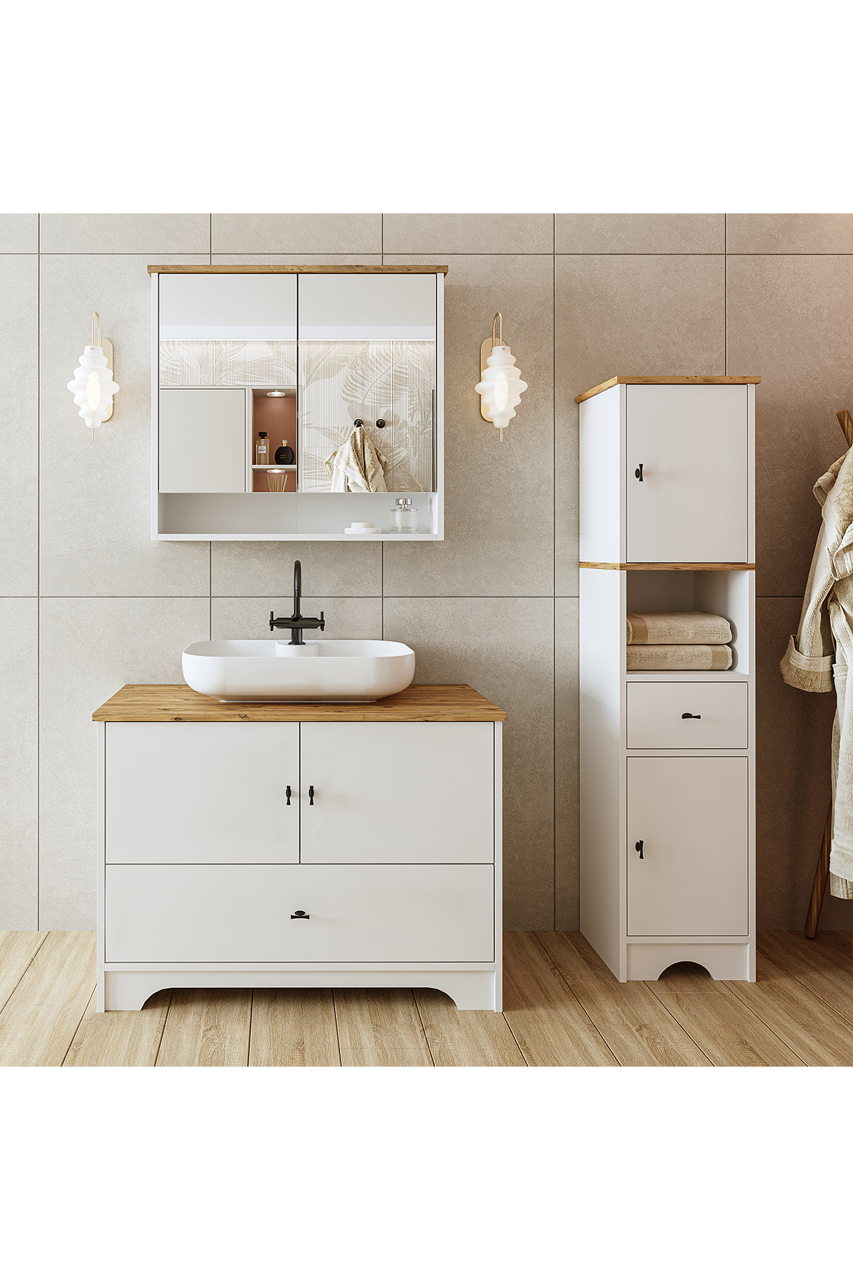 Oval Lavabolu Ayaklı 2 Kapaklı Çekmeceli Mat Beyaz Mdf 100 Cm Banyo Dolabı Oval Lavabolu Ayaklı 2 Kapaklı Çekmeceli Mat Beyaz Mdf 100 Cm Banyo Dolabı 2381 تک سایز