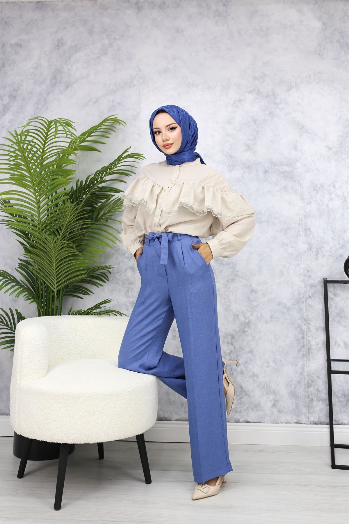 Mevsimlik Kadın Kemerli Palazzo Dabıl Kumaş Yüksek Bel Pantalon Mevsimlik Kadın Kemerli Palazzo Dabıl Kumaş Yüksek Bel Pantalon KEM PAL 104 46