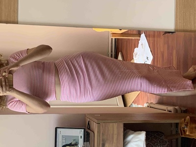 Kadın Çizgili Şeker Pembe Kısa Kollu Yırtmaçlı Etekli Likralı Takım TKM-19000194 Kadın Çizgili Şeker Pembe Kısa Kollu Yırtmaçlı Etekli Likralı Takım TKM-19000194 L