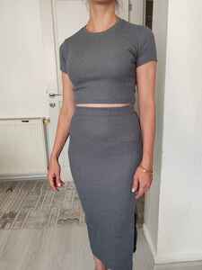 Kadın Füme Kısa Kollu Yırtmaçlı Etekli Likralı Takım TKM-19000194 Kadın Füme Kısa Kollu Yırtmaçlı Etekli Likralı Takım TKM-19000194 L