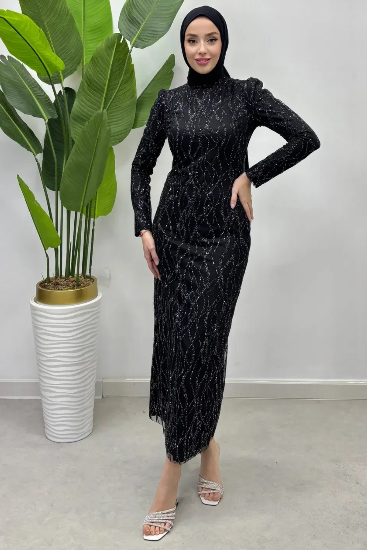 Kadın Krep Kumaş Tüylü Elbise Siyah Kadın Krep Kumaş Tüylü Elbise Siyah HMA3358014 2XL