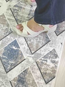 Krem Yüksek Yandan Tokalı Çapraz Şeritli Önü Açık Cilt Yazlık Kadın Dolgu Taban Sandalet Ayakkabı Krem Yüksek Yandan Tokalı Çapraz Şeritli Önü Açık Cilt Yazlık Kadın Dolgu Taban Sandalet Ayakkabı zek-18 40