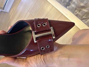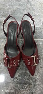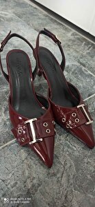 Sheri Bordo Renk Rugan Sivri Burunlu Toka Aksesuarlı Topuklu Ayakkabı Sheri Bordo Renk Rugan Sivri Burunlu Toka Aksesuarlı Topuklu Ayakkabı 01538BLR 42