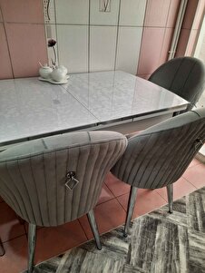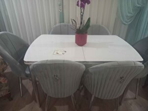 Edaf Serisi 80x132 Açılabilir Beyaz Mutfak Masa Takımı 6 Gri Sandalye Krom Detay Edaf Serisi 80x132 Açılabilir Beyaz Mutfak Masa Takımı 6 Gri Sandalye Krom Detay 22PUKA06BYZ تک سایز