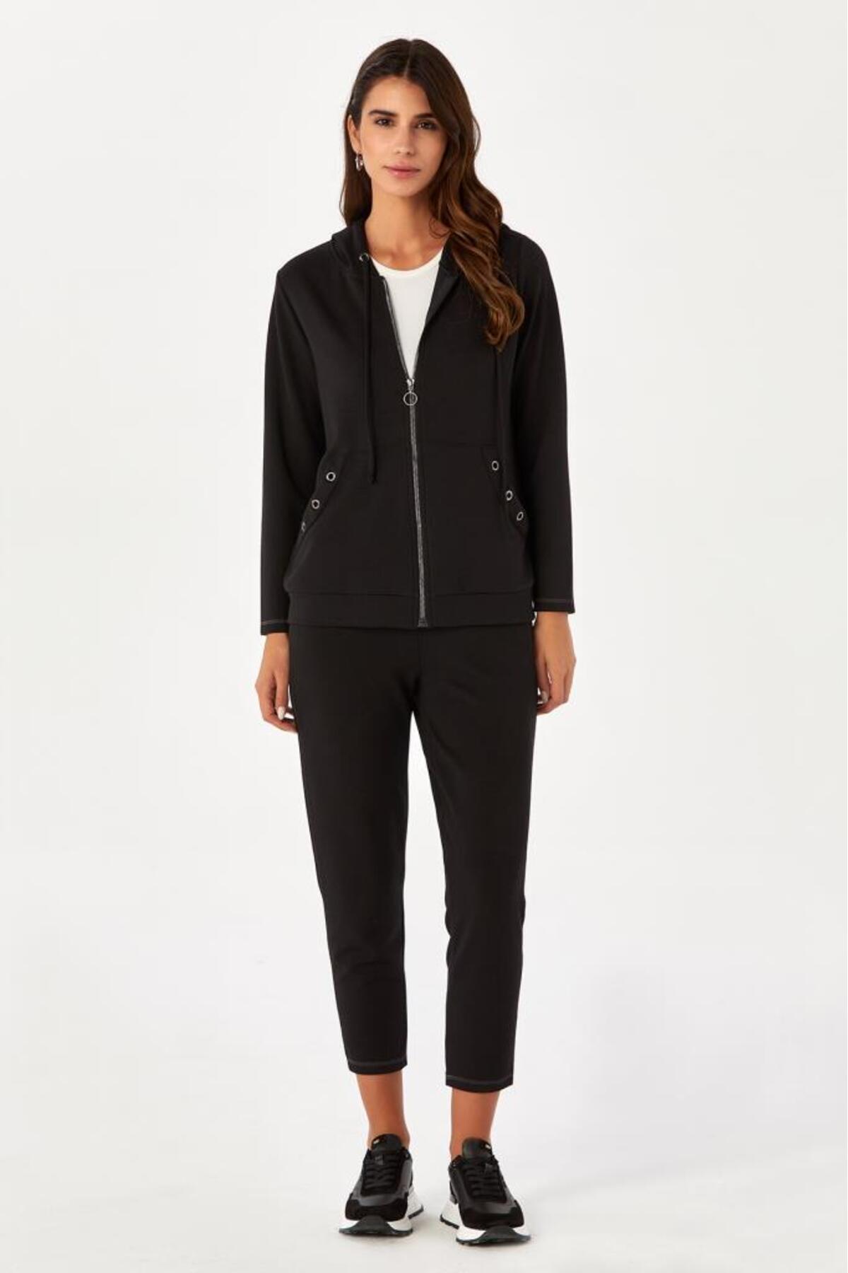 Önü Fermuarlı Sim Şeritli Kapüşonlu S-Shirt 024-2106 Önü Fermuarlı Sim Şeritli Kapüşonlu S-Shirt 024-2106 2XL