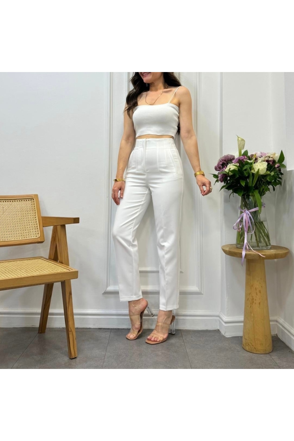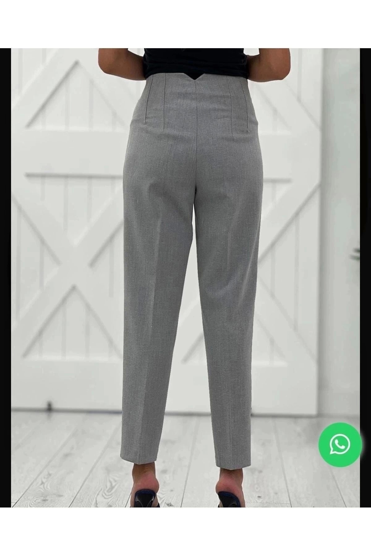 Kırçıllı gri önü pensli kumaş pantolon Kırçıllı gri önü pensli kumaş pantolon 588901 L