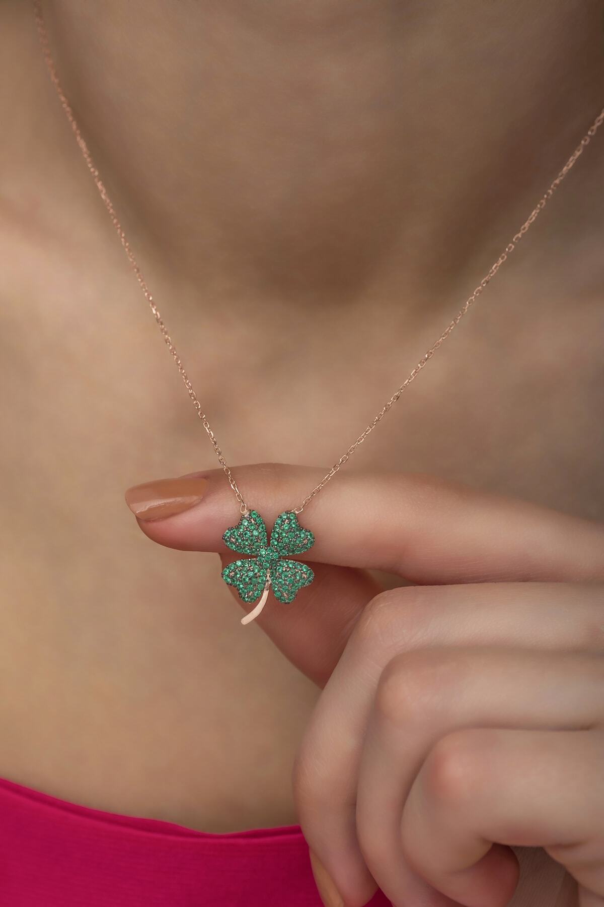 925 Ayar Gümüş Gold Kaplama Yeşil Taşlı Yonca Kolye 925 Ayar Gümüş Gold Kaplama Yeşil Taşlı Yonca Kolye NRZ999639 تک سایز