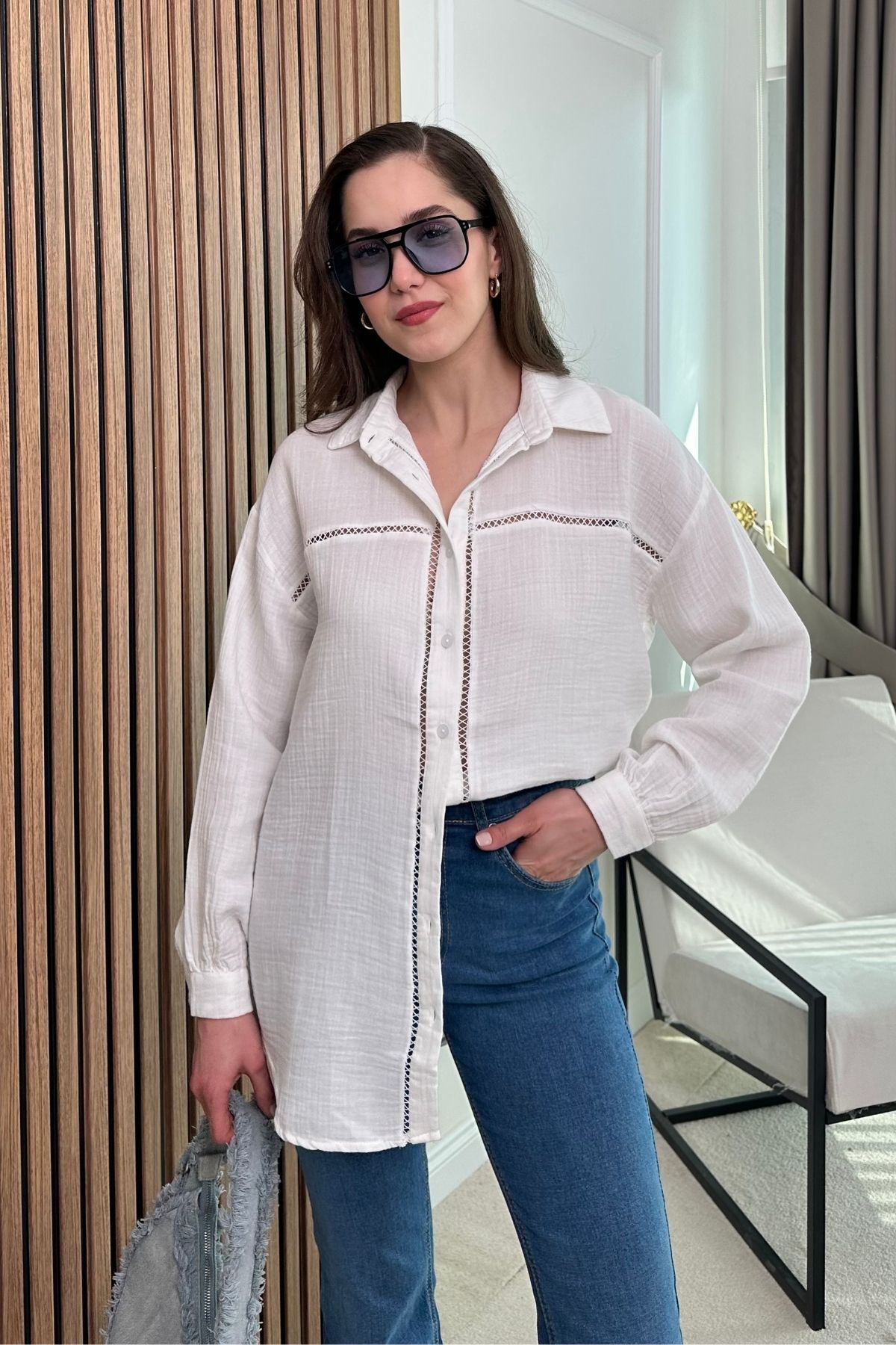 Kadın Omuz İşlemeli Beyaz Oversize Gömlek Kadın Omuz İşlemeli Beyaz Oversize Gömlek KRL4094 L