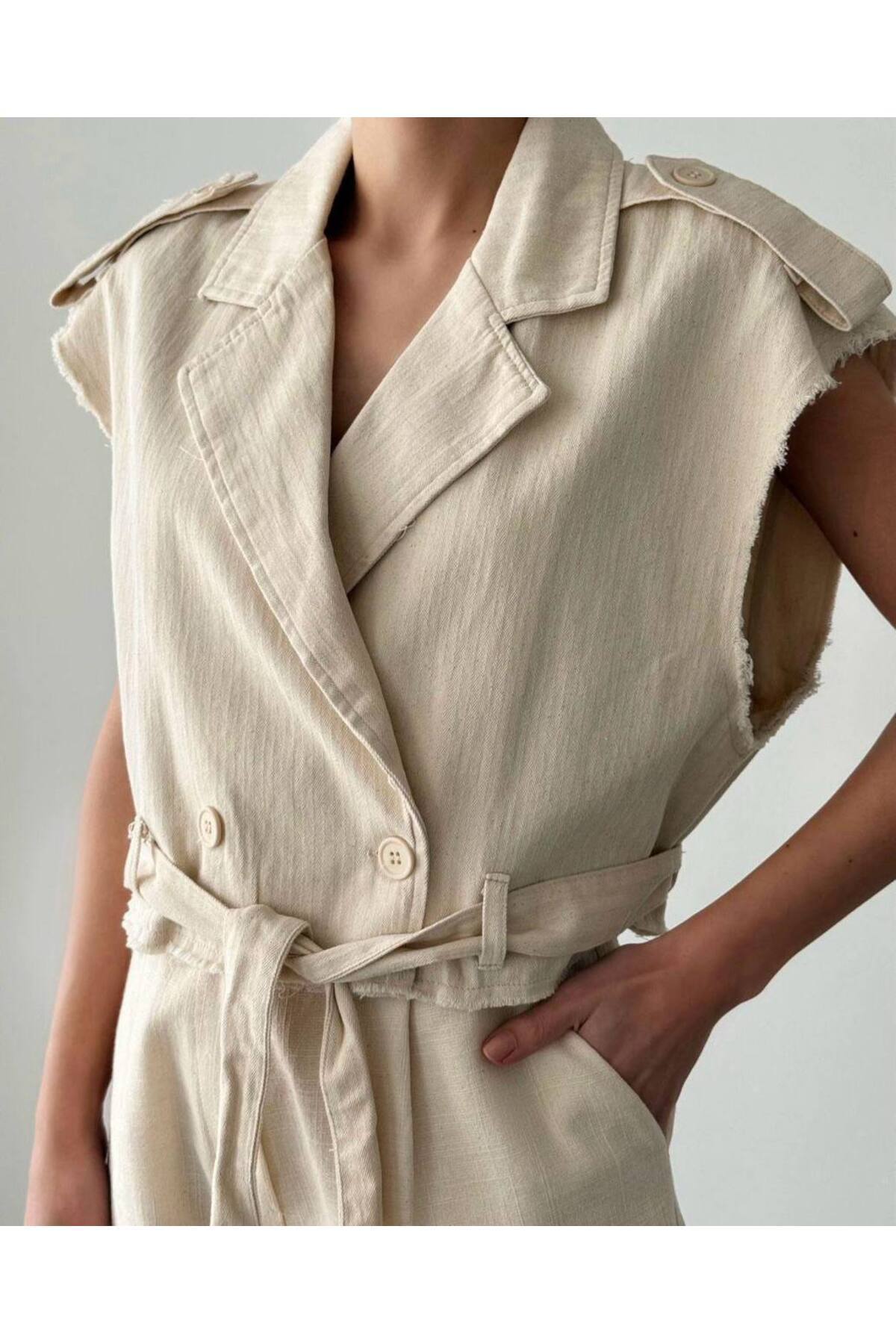 Bej Cep Detaylı Keten Yelek Bej Cep Detaylı Keten Yelek 24807 42