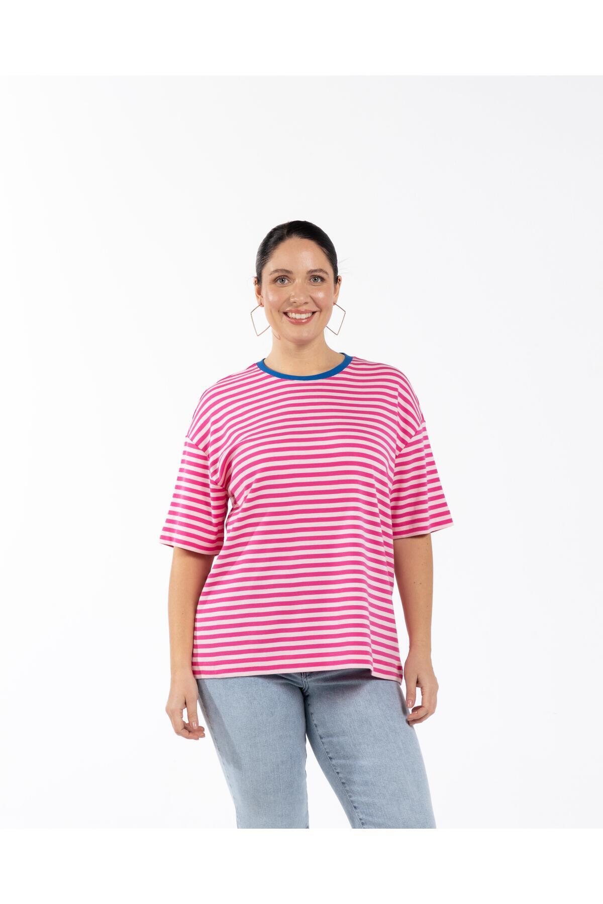 MILA Bisiklet Yaka %100 Pamuk Oversize Büyük Beden Çizgili T-shirt Pembe MILA Bisiklet Yaka %100 Pamuk Oversize Büyük Beden Çizgili T-shirt Pembe RH-LUO8682831033802 50
