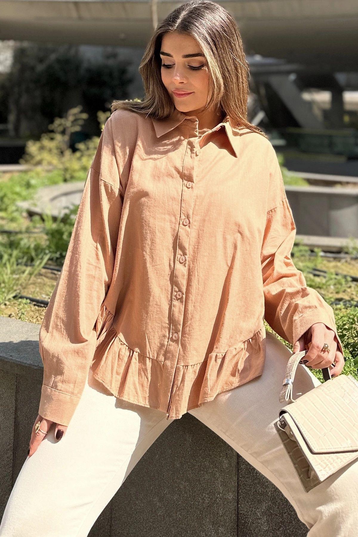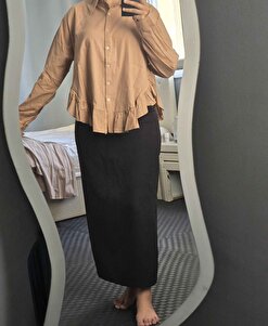 Kadın Bej Eteği Fırfır Ve Yırtmaç Detaylı, Terletmez Rahat Kumaş, Salaş Gömlek ( Pamuklu Keten) Kadın Bej Eteği Fırfır Ve Yırtmaç Detaylı, Terletmez Rahat Kumaş, Salaş Gömlek ( Pamuklu Keten) NY3570 42