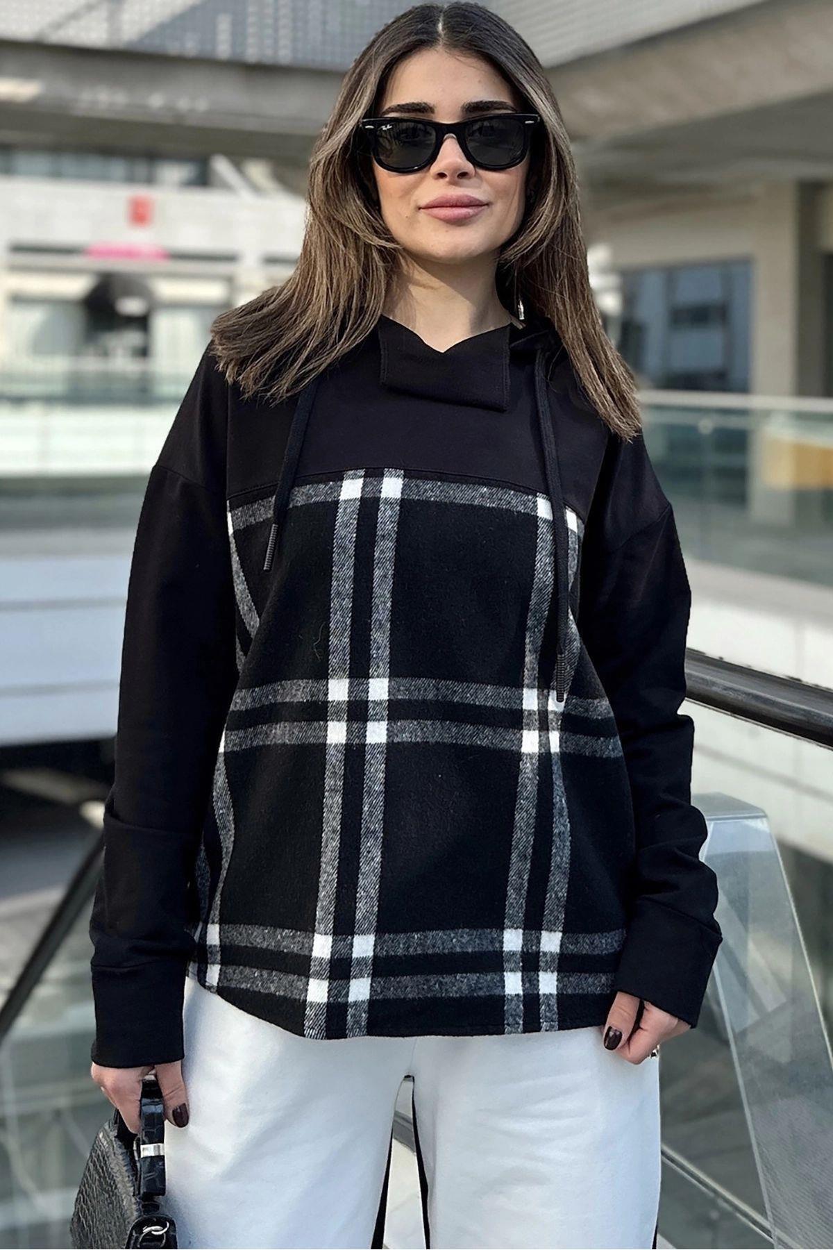 Kadın Ekru & Gri Ekose Garnili, Rahat Kesim, Kapüşonlu İki İplik Sweatshirt Kadın Ekru & Gri Ekose Garnili, Rahat Kesim, Kapüşonlu İki İplik Sweatshirt NY3565 42
